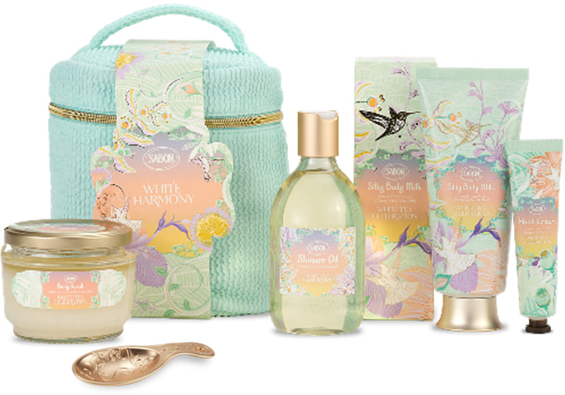 サボンの「ホワイトティー」は、春の訪れを告げるような香り。サボンを代表する多彩なアイテムがホワイトティーの香りを纏い、華やかなデザインの限定パッケージで登場。通常はホワイトティーの香りでは展開していないアイテムに加え、その香りにインスパイアされた限定アイテムを取り揃えた特別なコレクションです。