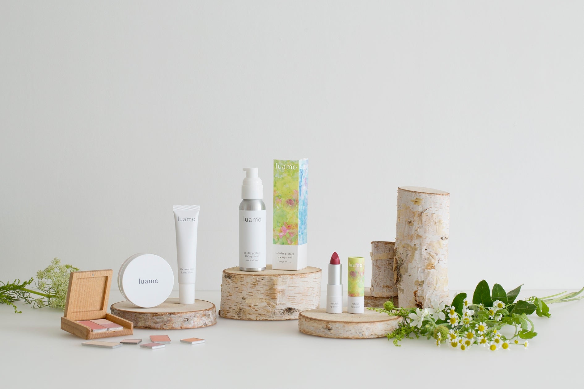 2018年にブランド第一号製品として発表された紫外線吸収剤を使わず、ミネラルで紫外線からお肌を守る「ルアモ オールデイプロテクト UVアクアヴェールSPF28 PA+++」。新成分でもあるミネラル「酸化セリウム」が紫外線A波、B波だけでなく第三の紫外線ともいわれるブルーライトからもお肌を守ります。北海道産のラベンダーを蒸留したラベンダーウォーターをベースに、同じく北海道産のクマイザサのエキスを保湿成分として配合し、日焼け止めとは思えない乳液のようなウォーターベースのみずみずしいテクスチャーは、顧客からも評価されています。まったく白浮きせず、オーガニックゼラニウム精油を基調にしたハーバルフローラルな香り。朝はもちろん、夜のスキンケアでお使いいただくことで、気になるPCやスマホのブルーライトからもお肌を守ります。(そのまま寝てしまって問題ありません)