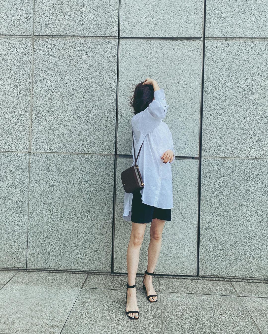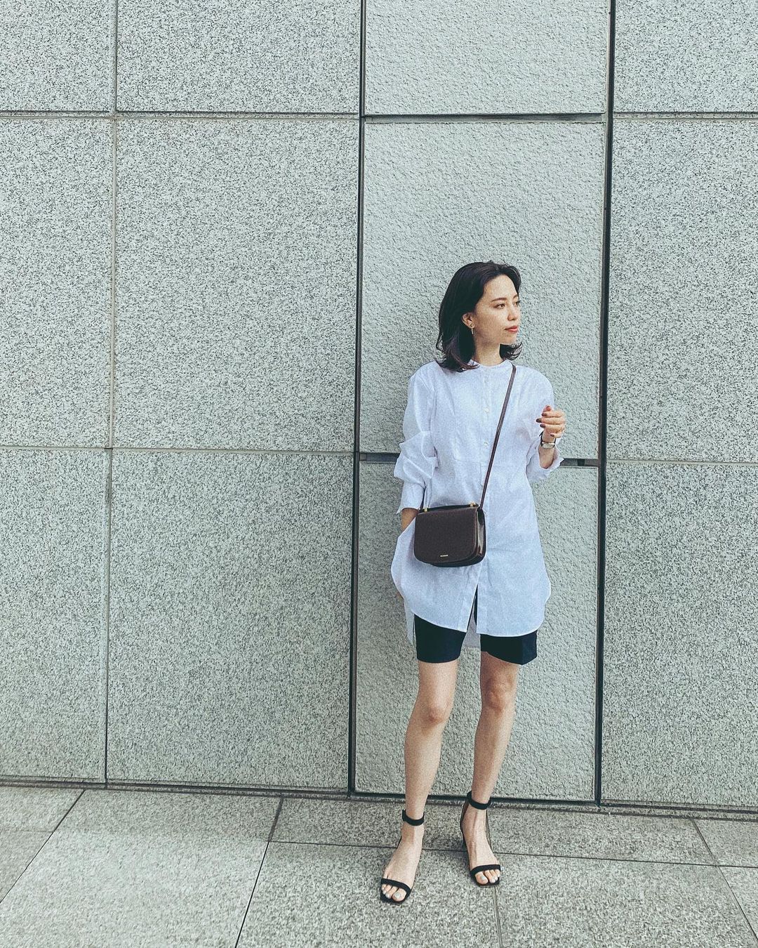 この上にカーディガンで🖤 大人のショートパンツだいすきです。 ・ shirt @cadune_official pants @akte_official shoes @pippichic_official bag @jilsander #yuria_sato#佐藤優里亜Sato YuriaYuria Sato