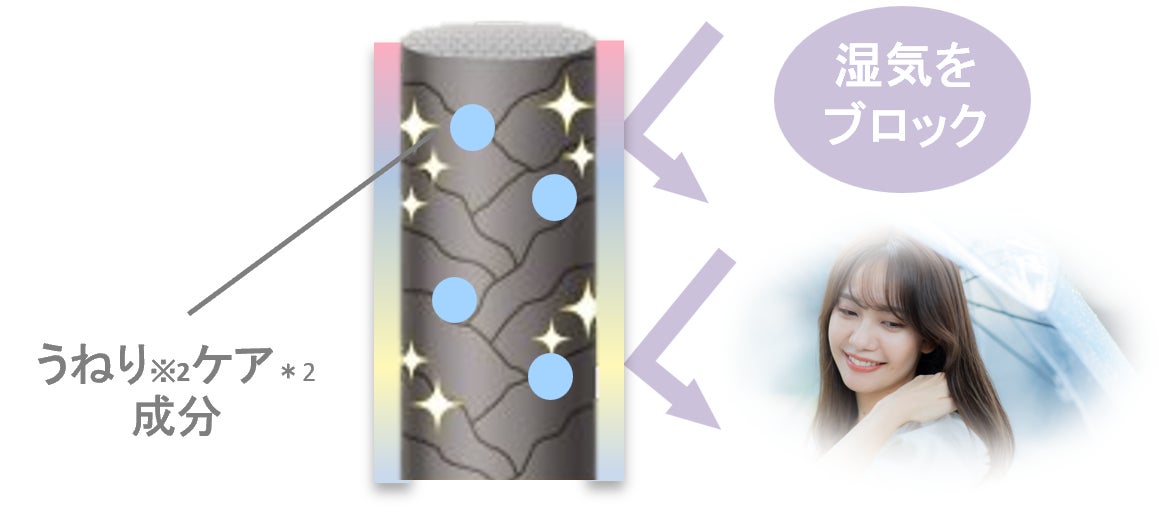 雨の日対策として、撥水うねり※2ケア成分*2やナイアシンアミド*3などを配合。湿気や水分を撥水しながらうねり※2を補正し、湿気に負けないスタイルをキープします。
