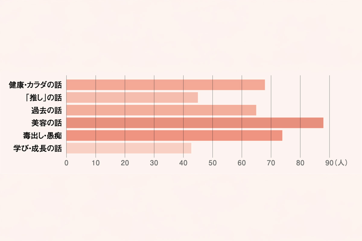 歩んできた人生や家族構成が違ったとしても、共通した悩みの多い美容や健康、家族の話は共感できるトピックスとして目立っていました。皆、共感を求めているんです!