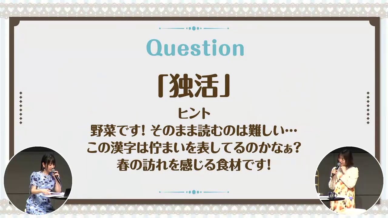 独活という漢字を読めなかった種田梨沙さんと花澤香菜さん 「Salon de Tanedaへようこそ♪ Spring Party2026 昼の部」 #花澤香菜さん #種田梨沙さん #茅野愛衣さん #野菜 #難読漢字 #ウド #春 female voice actorsvoice actorsvoice actresses声優女性声優種田梨沙 Write A Commentコメントを投稿するにはログインしてください。