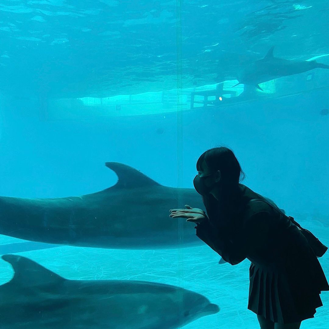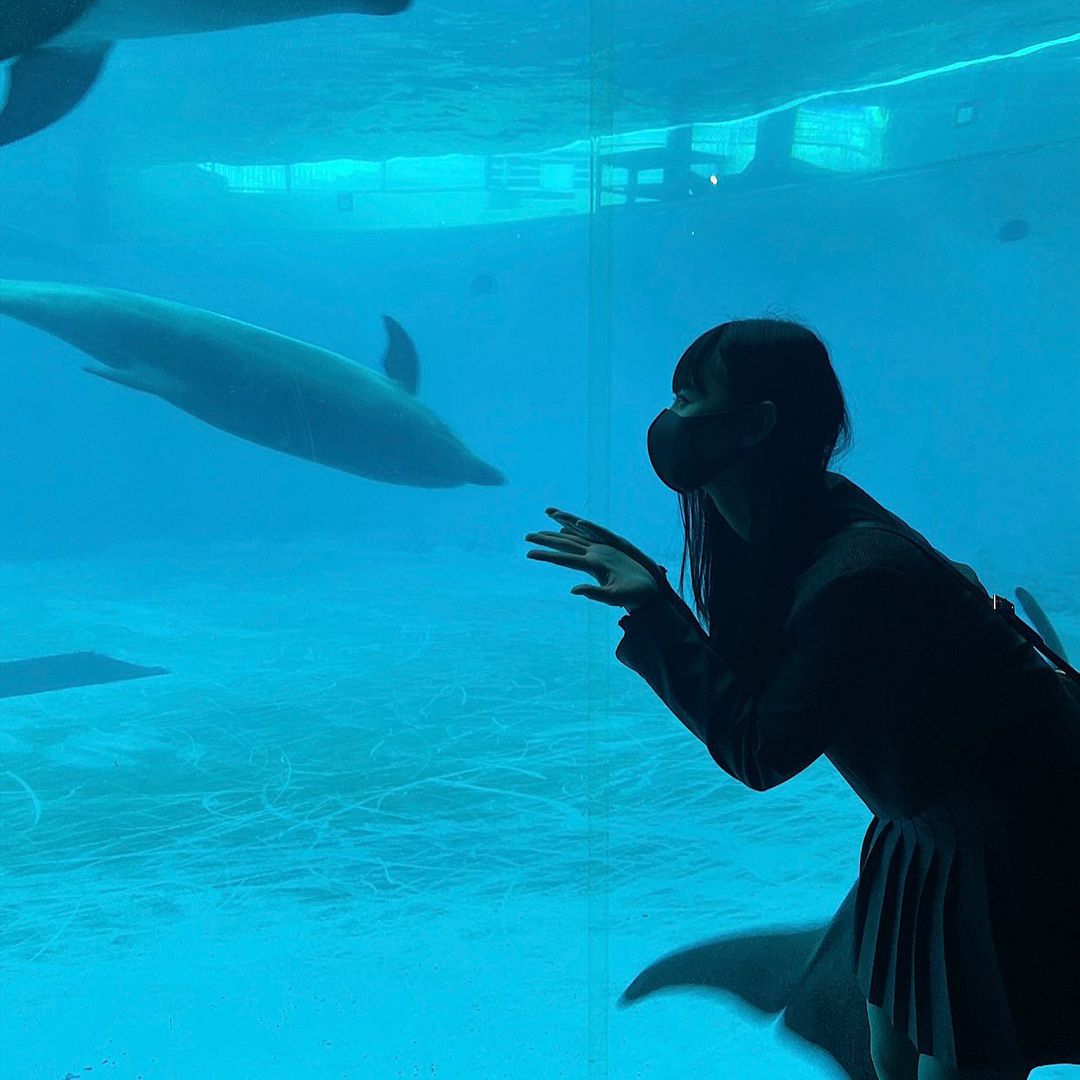 ひなたも泳ぎたい〜〜🐬 . . . . . . . . . . . . . . . . . . . . . . . . . . . . . . #下関 #下関水族館 #九州旅行 #イルカ #セットアップ #唐戸市場 #hinata_matsumoto#松本日向Hinata MatsumotoMatsumoto Hinataイルカセットアップ下関下関水族館九州旅行唐戸市場