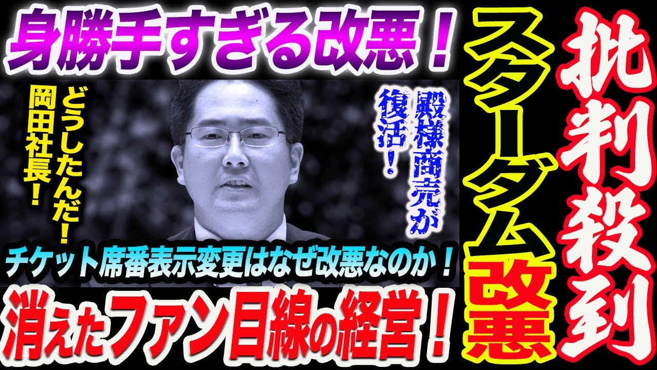 スターダム批判殺到!消えたファン目線の経営!身勝手すぎる改悪!どうしたんだ!岡田社長!また殿様商売が復活か!チケット席番表示変更はなぜ改悪なのか!スターダム STARDOM