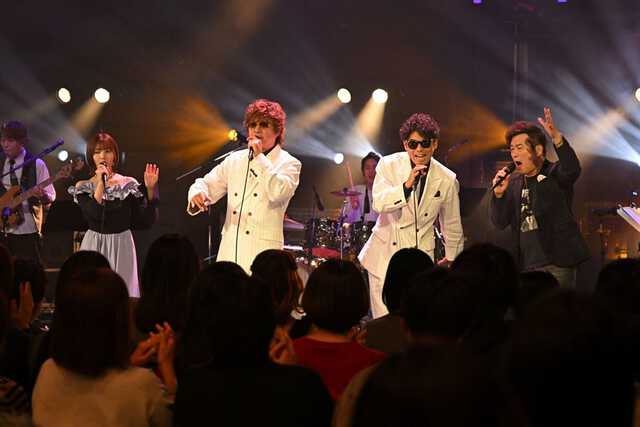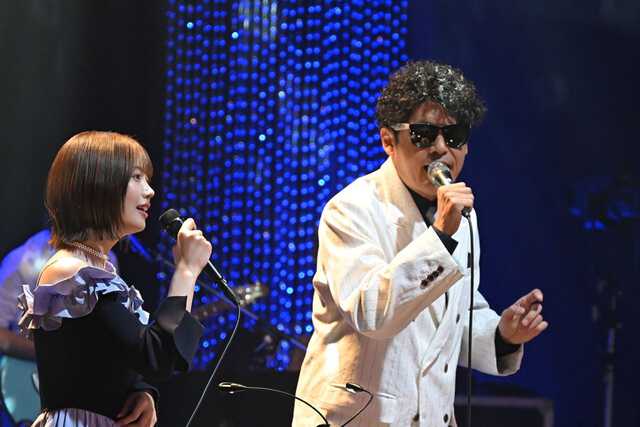 続いてTAKEと黒沢のセッション。TAKEが選んだ曲は、黒沢と「ガチで歌いたい」と話した、崎谷健次郎の「もう一度夜を止めて」。セッティング中、この曲の作詞が、中西が所属する乃木坂46の総合プロデューサー・秋元康であることが話題に。セットチェンジの際などに時折出てくる黒沢のトリビアは、楽曲への解像度を一段階上げる。同時に、いかに黒沢が、これまで毎日、様々な音楽を自分の中に取り込んできたのかが分かる。音楽的ルーツから、アーティストのバックボーンまで、細かく落とし込んで咀嚼している。黒沢は音楽に対しても相当な食いしん坊だ。そうでなければ、これまでのゲスト陣の多様なジャンルに対応できていなかったと思う。TAKEと黒沢が歌割りを確認している。TAKEは、この曲の2番のサビを黒沢 薫の声で聴きたいと言った後「後半は黒沢 薫 節(ぶし)で、ニャーニャー、ニャーっていって……」「ハモったらハモってもいいけど」「出たとこ勝負で」「バンドの皆さんも楽しんじゃってください。こっちも楽しむ」と、歌のエキスパートならではの言葉がどんどん飛び出す。黒沢も“楽しもう”という表情。お互いの引き出しの中身まで熟知しているからこそ成立する信頼感が、観客を“聴く”モードに集中させていく。TAKEと黒沢、ふたりで歌った「もう一度夜を止めて」は、声と声のラリーが続く、名試合だったと思う。歌い終わった後、がっちり握手。観客は喝采でレスポンスした。「イメージしていた以上のパフォーマンスで返してくれた」と黒沢を称賛するTAKE。村上は「TAKEがこの曲をブラックミュージックのテイストで解釈していたことが、腑に落ちた。バンドの解釈もぴったり合っていて素晴らしかった」と絶賛していた。