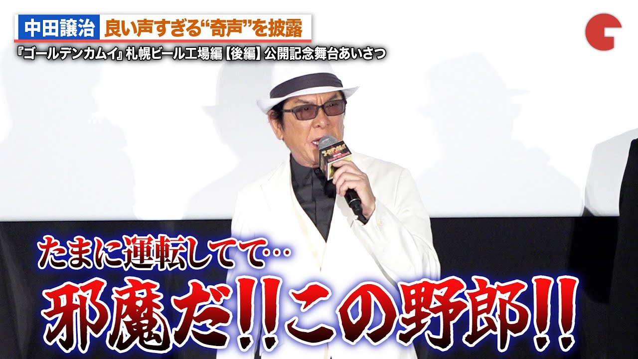 【ゴールデンカムイ】中田譲治、良い声すぎる“奇声”を披露!?小西克幸が鯉登少尉の奇声をアレンジ 劇場先行版 アニメ『ゴールデンカムイ』札幌ビール工場編【後編】公開記念舞台あいさつ