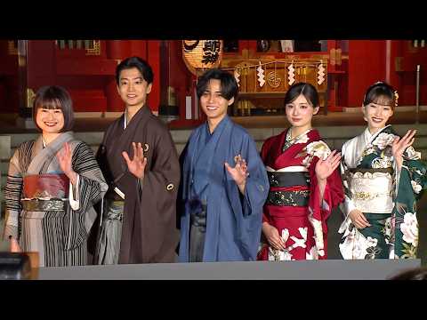 永瀬廉、吉川愛、伊藤健太郎、片岡凜が東京・神田明神で行われた映画「鬼の花嫁」(3月27日公開)の大ヒット祈願イベント&完成披露試写会に出席した。