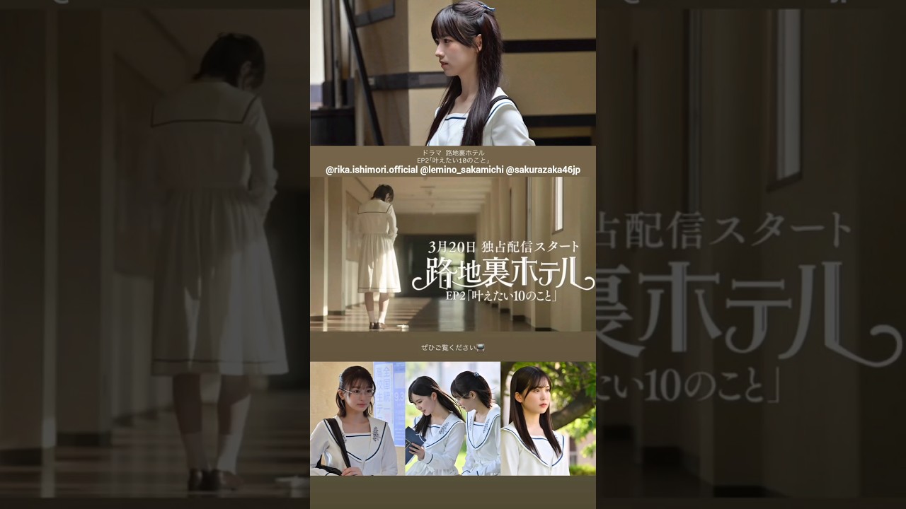 石森璃花 本日3月20日 レミノにて 櫻坂46 ドラマ『路地裏ホテル』EP2 前編の配信がスタートしました!後編は3月27日12:00よりレミノで独占配信開始です!