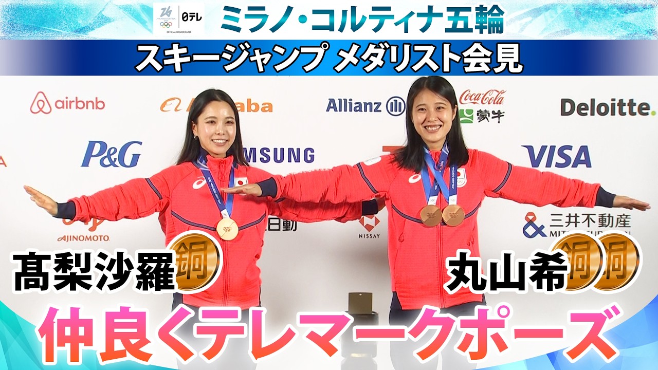 【五輪期間の練習日誌は?】混合団体銅・高梨沙羅「選手は感謝を結果で返すしかない」2つの銅・丸山希と一緒に“テレマーク”披露|スキージャンプ メダリスト会見|ミラノ・コルティナ五輪