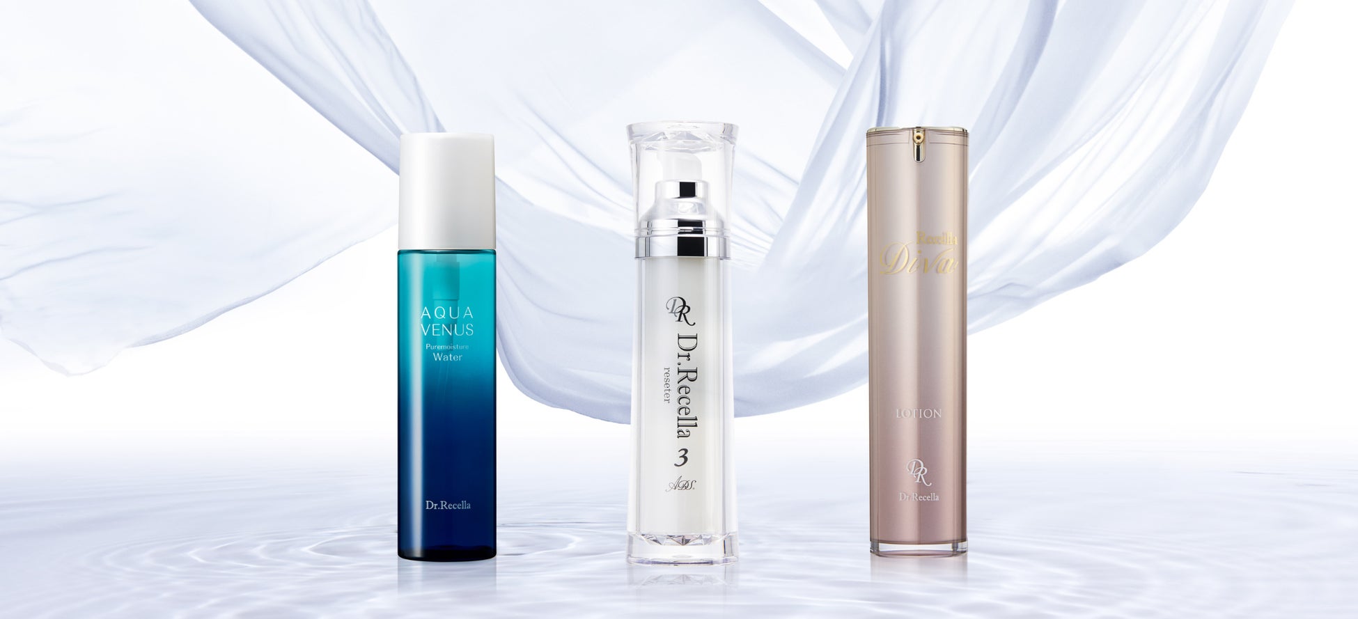 海の水と山の水、自然のちからを生かした、ドクターリセラ独自基剤「α Gri-X®」︎の力をまっすぐ届けるベーシックケアブランド。