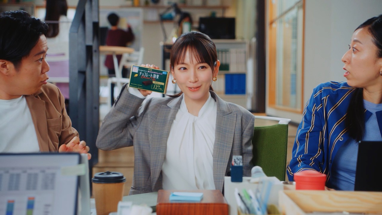 本CMには吉岡里帆が出演。定時で仕事を終える“シゴデキセンパイ”役として、チョコレート効果を“おやつではなく必需品”と力説する姿が描かれる。オフィスを舞台に、集中力が切れた社員に商品を配るなど、スマートかつ後輩思いなキャラクターを体現。「ワークチョコレートバランス」という新習慣を提案する内容となっている。