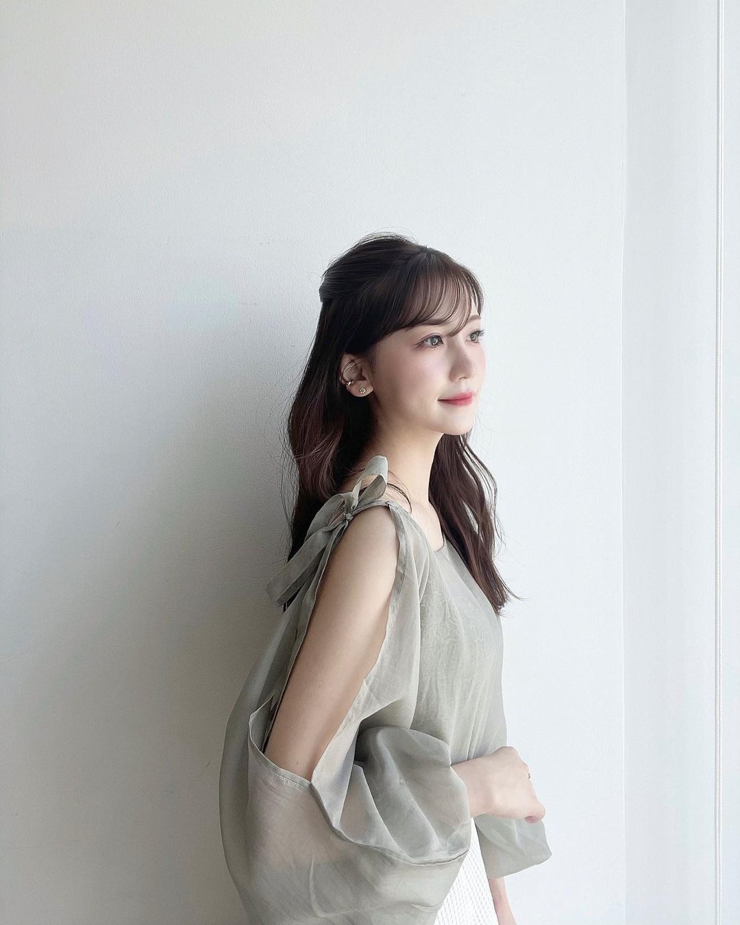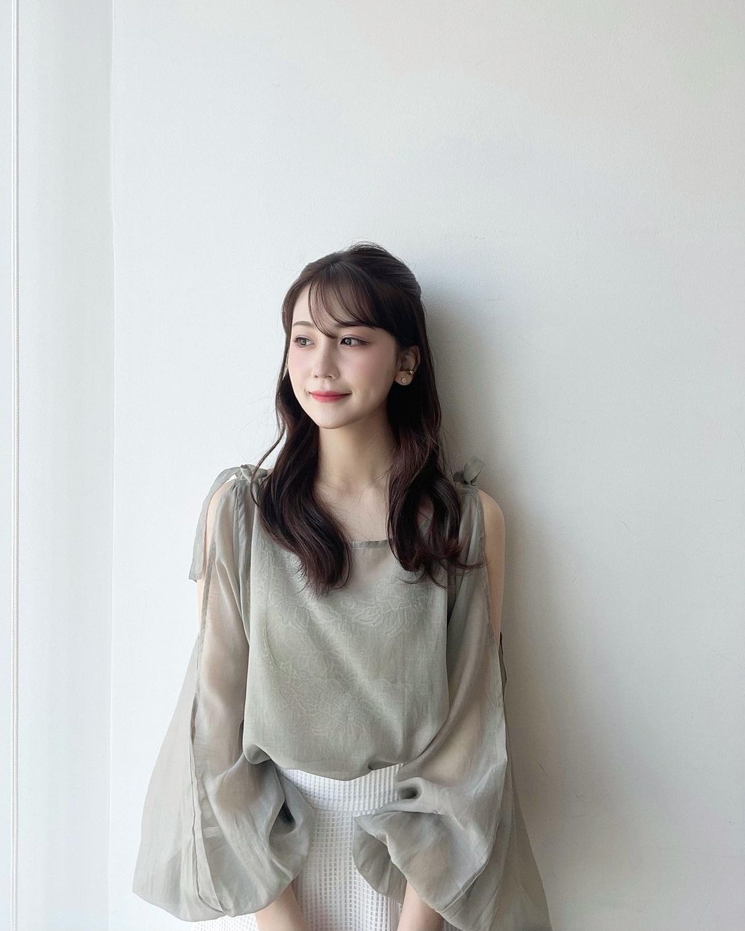 そしてシアー肩リボンブラウスの