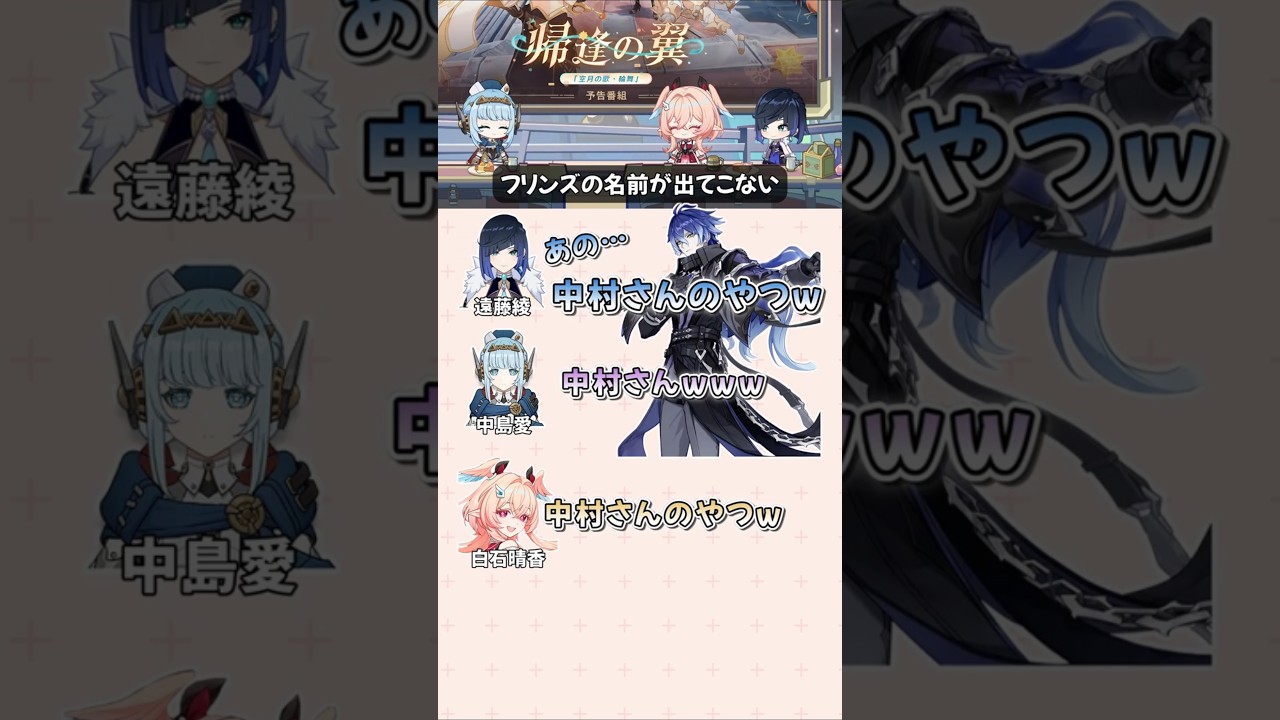 【原神】「中村さんのやつ」名前をど忘れした遠藤綾さんが面白すぎる【LUNA6予告番組】#原神 #genshinimpact #遠藤綾 #中島愛 #白石晴香 #リンネア #フリンズ #shorts フリンズの名前が出てこなくて「中村さんのやつw」と呼ぶ遠藤綾さん 【原神】「Luna Ⅵ」予告番組 より #声優 female voice actorsvoice actorsvoice actresses声優女性声優遠藤綾 Write A Commentコメントを投稿するにはログインしてください。