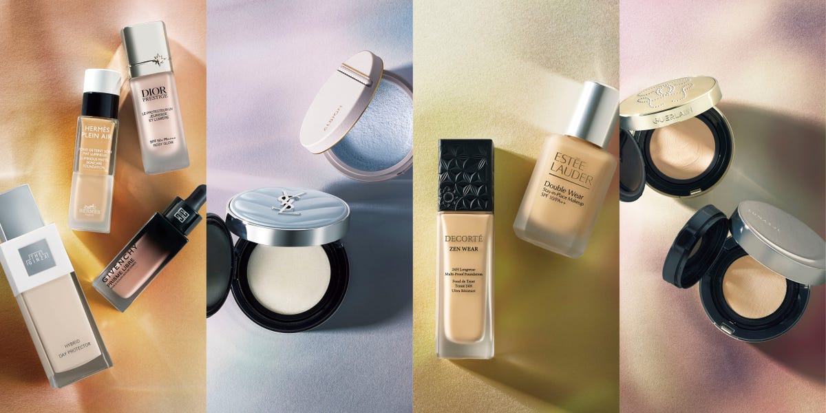 (上から)ナイアシンアミドやヒアルロン酸など、スキンケア成分82%で構成されたファンデは、肌へ溶け込むようにフィット。プラン エア フォン ドゥ タン ソワン 33㎖ 全34色 ¥19,800/エルメスジャポン ブライトニングとエイジングケアの両方にアプローチし、透明感のある肌へと導く下地。プレステージ ホワイト ル プロテクター UV ルミエール ロージーグロウ SPF50+・PA++++ 新1色 30㎖ ¥15,950/パルファン・クリスチャン・ディオール ピンク、パープル、グリーンの3色展開の美容液は、ナイアシンアミドやビタミンCなど、カラーによって配合成分が違うため、悩みに合わせて選ぶのも◎。プリズム・リーブル・ケア&カラー・セラム・プライマー 全3色 30㎖ ¥7,700/パルファム ジバンシイ ブランドのシグニチャーでもあるリンデンエキスと外部環境から肌を守る独自コンプレックスを配合。乾燥や紫外線から肌を守り、素肌感のある肌へと補整するUV下地。ハイブリッドデープロテクター n SPF35・PA+++ 30g ¥36,300/ザ・ギンザ