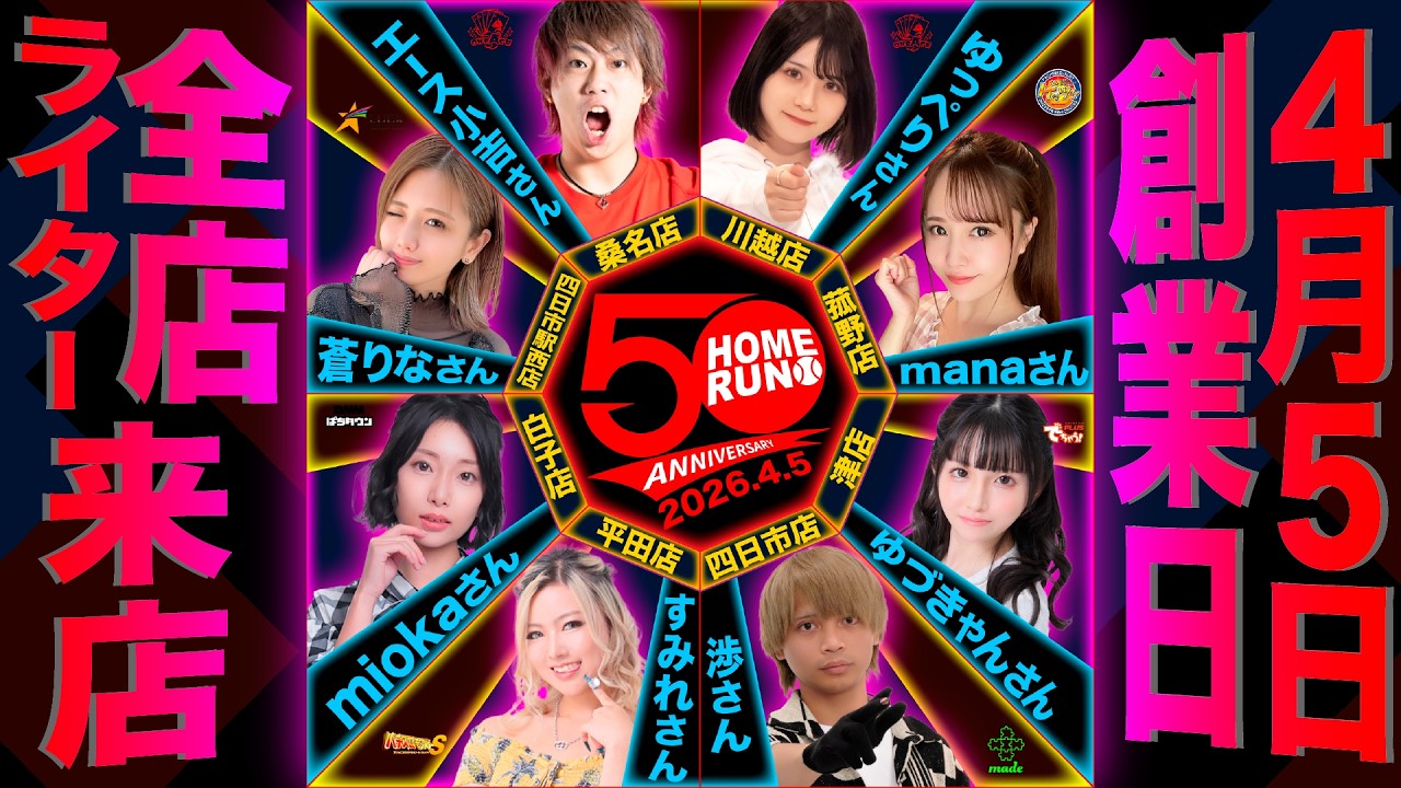 創業日4月5日(日)ホームラン全店ライター来店 4月5日は創業日 全店ライター来店(予定) ・桑名店 エース小吉さん ・川越店 ゆっぺりさん ・菰野店 manaさん ・四日市駅西店 蒼りなさん ・四日市店 渉さん ・平田店 すみれさん ・白子店 miokaさん ・津店 ゆづきゃんさん 皆様のご来店をお待ちしております。 idolアイドル小畑優奈 Write A Commentコメントを投稿するにはログインしてください。