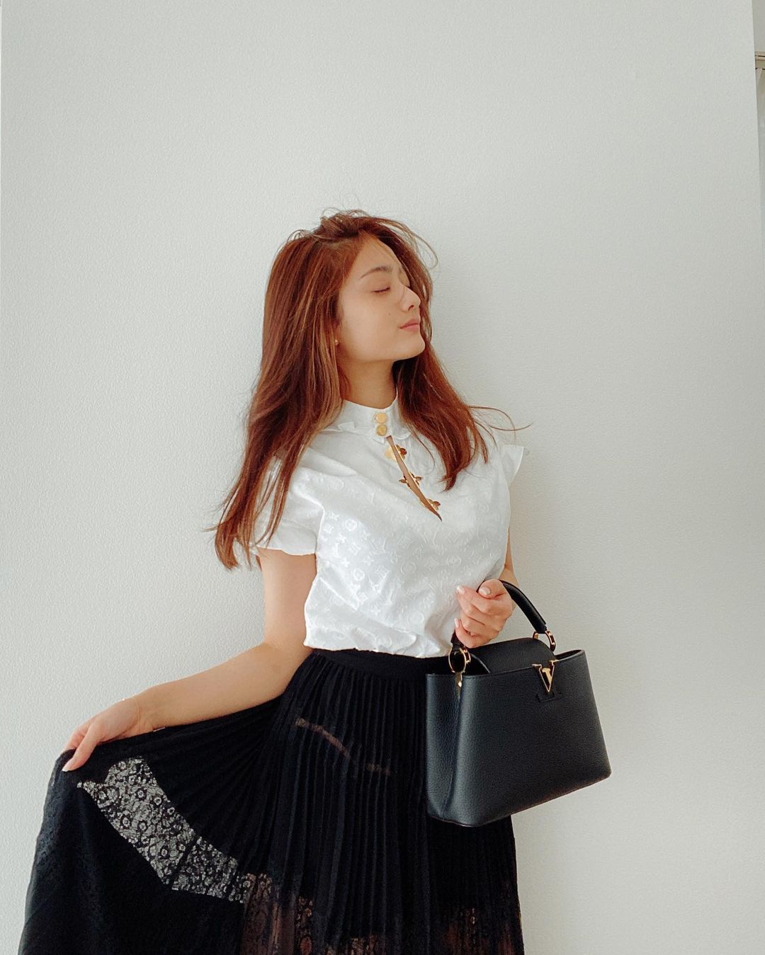 みなさま今日もお疲れ様です❤️ Today’s me ❤️ スカート着ると嬉しくて回っちゃう🥺❤️ Tops bag @louisvuitton Skirt @amerivintage #maria_taniMaria TaniTani Maria谷まりあ
