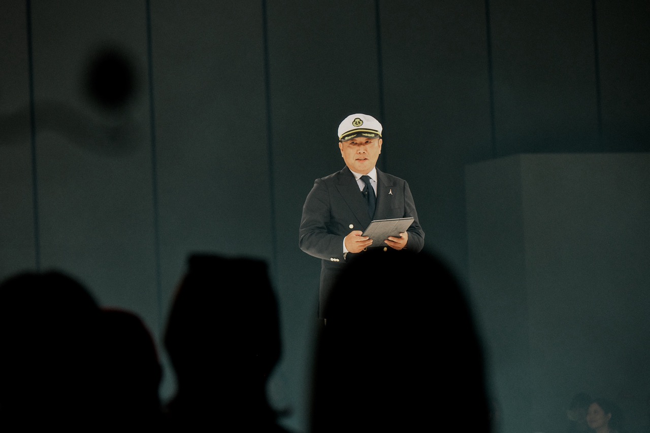 ベイクルーズグループは4月2日、2026年度入社式を都内で開催した。今年度は総勢147人の新入社員が入社。古峯正佳社長は入社式の場を“ベイクルーズ号”とし、その船長としてキャプテンハットを被った姿で登壇した。