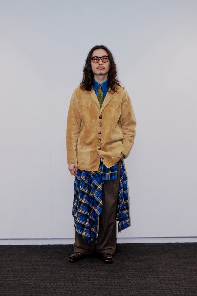 井浦さん:レザーのジャケットとデニムシャツ、ネクタイでまとめて「ジャーナルスタンダード」らしさを表現しました。