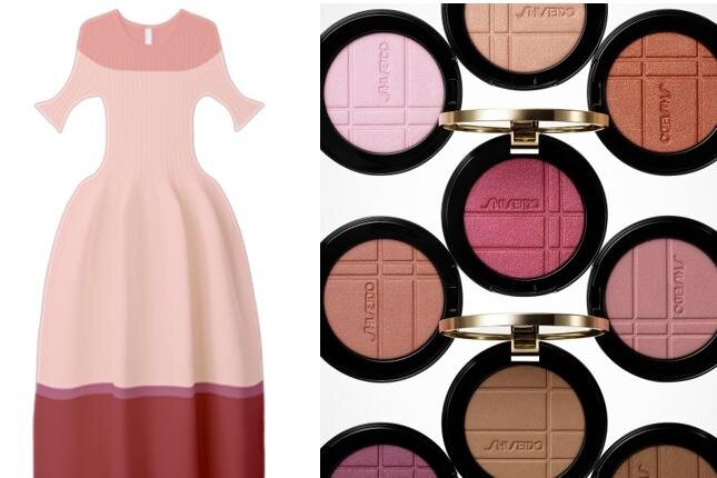 ベースとなるのは、好みの配色でアレンジできるCFCLのカラーカスタムサービス。ワンピースのスカート部分にボーダーを取り入れたり、トップスの袖を切り替えたり、スカートの裾に模様をあしらったり…自由にデザインできるのが魅力だ。そんな人気サービスに、SHISEIDOのコスメから着想したカラーが特別に加わる。