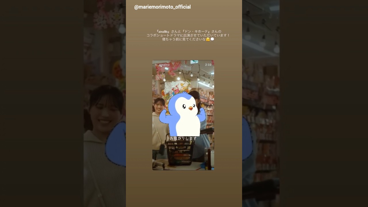 『aimaiMe(アイマイミー)』と『ドン・キホーテ』のコラボショートドラマに #森本茉莉 が出演しております 是非ご覧ください https://vt.tiktok.com/ZSHhbvddG/