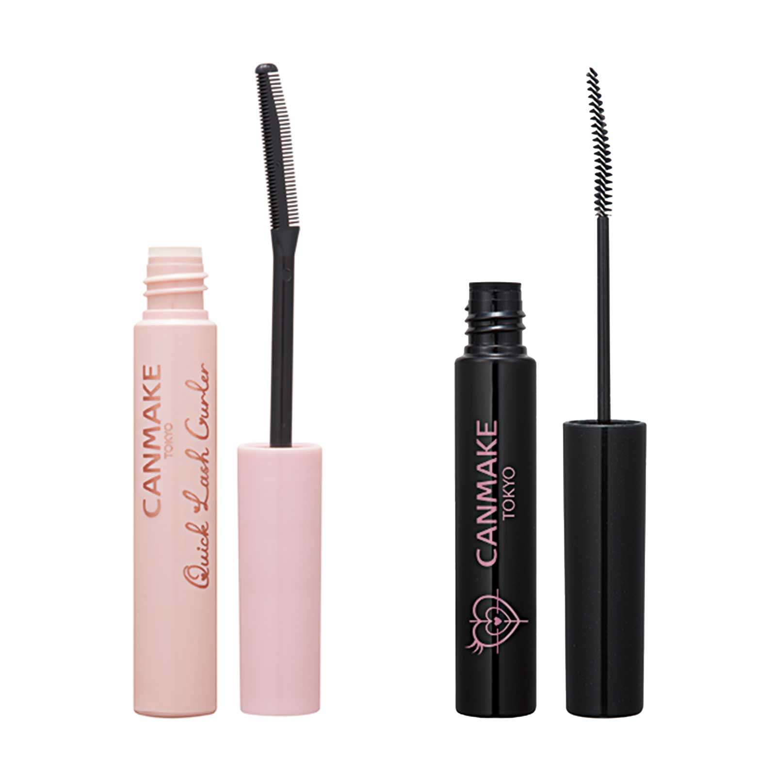 ヘアメイクさんにオススメされた2品。クイックラッシュカーラーをベースに立ち上げ、カールスナイパーマスカラで綺麗なセパレートまつ毛に。最後にクイックラッシュカーラーでコーティングして仕上げると色もカールも長時間長持ち。左:長時間落ちてこないカールキープ力! CANMAKE クイックラッシュカーラー 透明タイプ ¥748(ともに井田ラボラトリーズ)右:極細ブラシで繊維がないのにロングに。CANMAKE カールスナイパーマスカラ 01ブラック ¥792