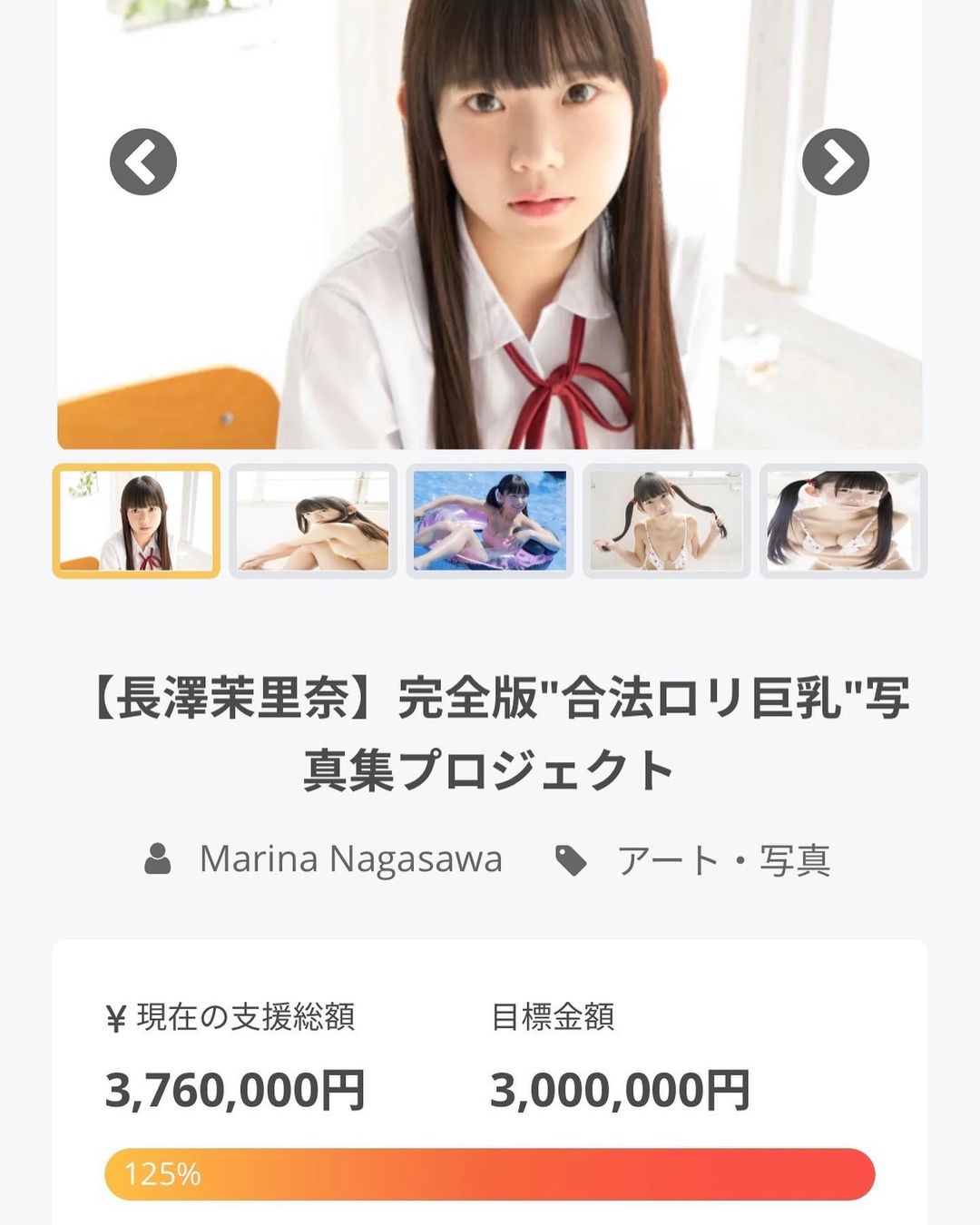 クラウドファンディング なんとまりちゅうもびっくり! 開始43分で目標達成できました!!😭😭😭 支援してくださった皆様ほんとにありがとうございます!! まだの方も6/20まで支援できるのでみんなで最高の写真集つくりましょおおお!!!!!! #合法ロリ #写真集つくる #超頑張る Marina NagasawaNagasawa Marina写真集つくる合法ロリ超頑張る長澤茉里奈