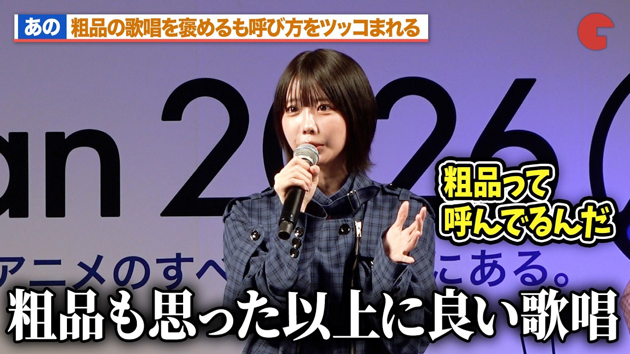 【ケロロ軍曹】あの、粗品の歌唱を褒めるも渡辺久美子&小桜エツコに呼び方をツッコまれる 渡辺久美子(ケロロ軍曹役)、小桜エツコ(タママ二等兵役)、あの(宣伝隊長)、福田雄一(脚本・総監督)が登壇! AnimeJapan 2026スペシャルステージ『新劇場版☆ケロロ軍曹 復活して速攻地球滅亡の危機であります!』「ケロロ軍曹のケロッ!とラジオ」公開収録の模様をお届け! #ケロロ軍曹 #渡辺久美子 #小桜エツコ #あの #福田雄一 CinemaTodayDoNotTweetfemale voice actorsvoice actorsvoice actressesシネマトゥデイ声優女性声優映画渡辺久美子 Write A Commentコメントを投稿するにはログインしてください。