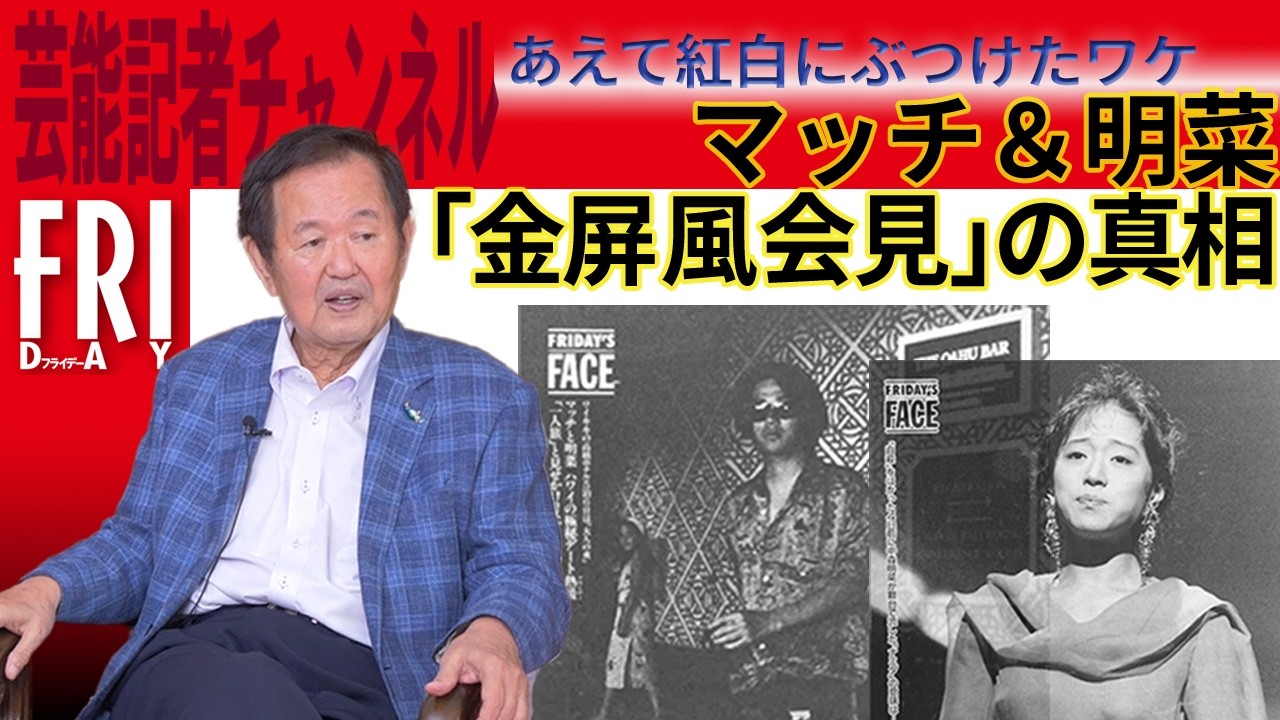 今回は芸能史に色濃く残るマッチと明菜の「金屏風会見」。‛89年12月31日、大晦日に都内のホテルで行われた中森の「緊急復帰会見」が行われたが、なぜかひな壇のうしろには金屏風が。そして交際中だった近藤も駆け付け、参加した記者たちには“結婚”の2文字が浮かぶが……。会場でマイクを向けていた石川レポーターが明かす、会見のウラ側とは。