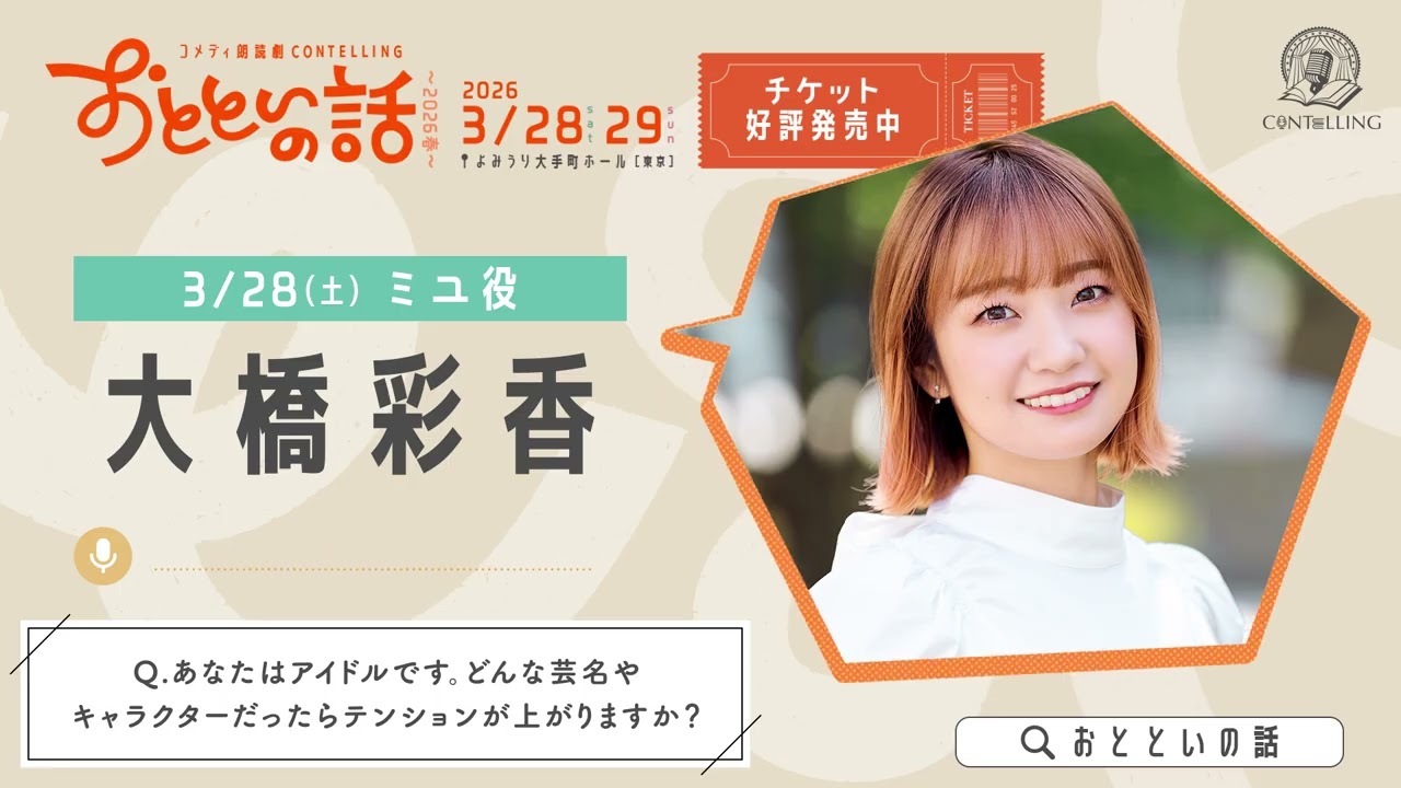 「おとといの話~2026春~」3/28(土)ミユ役/大橋彩香 コメント #コンテリング