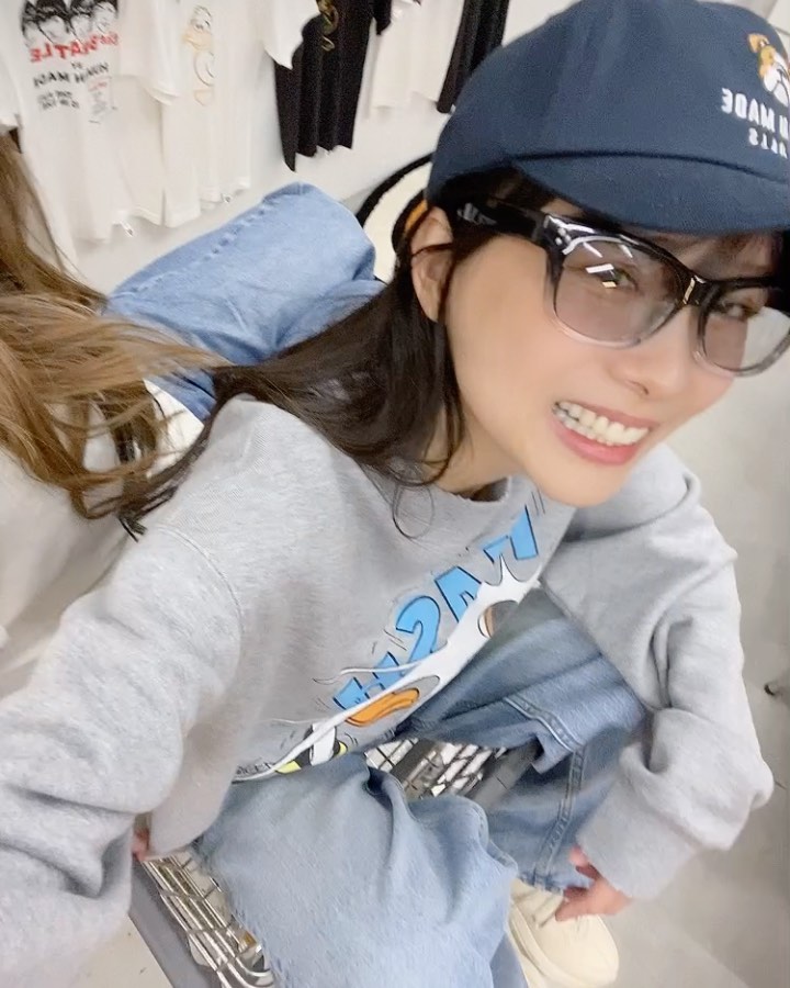 @重盛さと美: @jins_japan × @nigo @k_i_h_o_ 昔からカゴに入るのスキ(笑)…