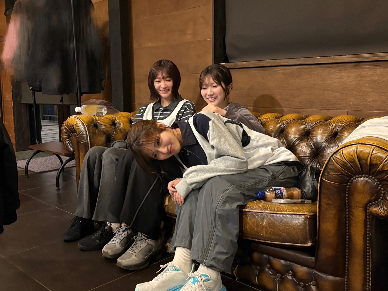 休憩時間にまとまって座ってるメンバーを
