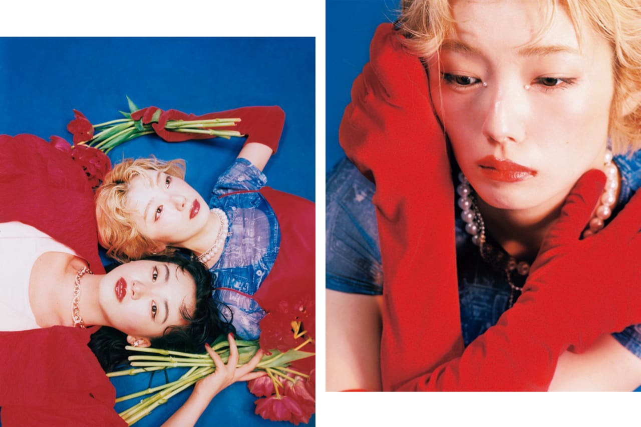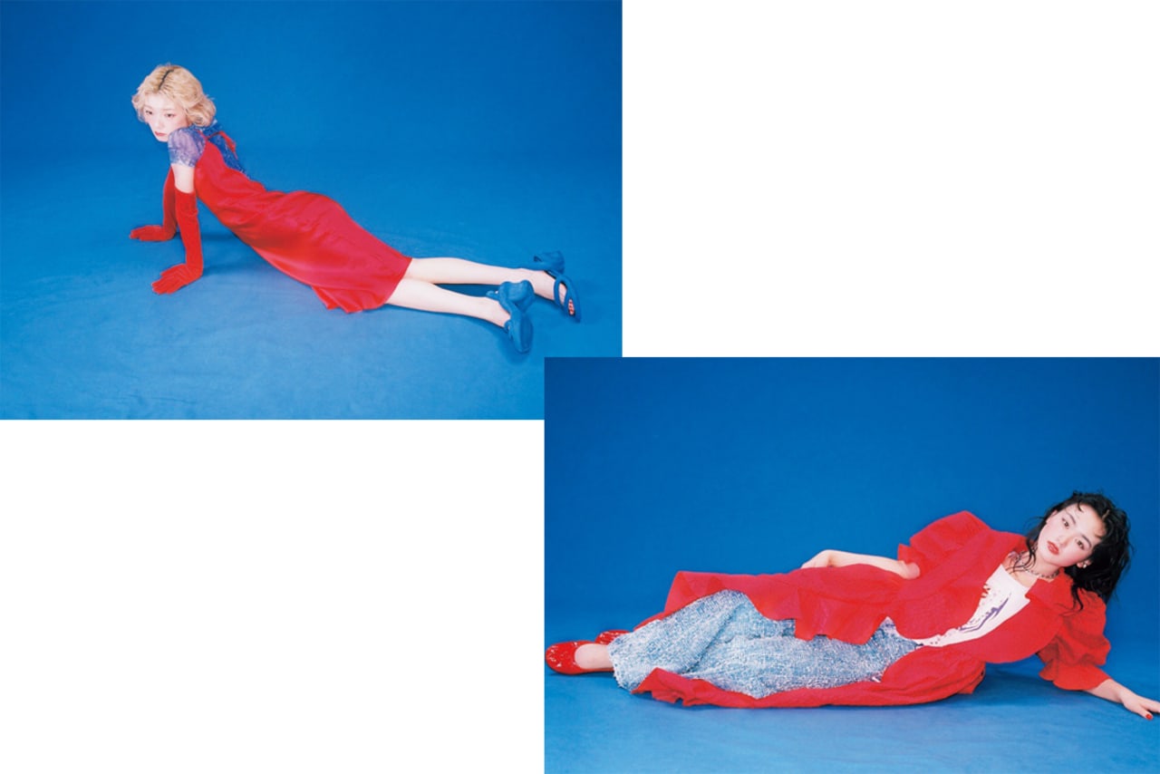 【左・夏鈴】サテンドレス¥121000/エンメ(エレイン ハースビー) シアートップス¥16500/DIESEL JAPAN(DIESEL) イヤカフ¥15400/e.m. 青山店(e.m.) ネックレス¥38500/THE WALL SHOWROOM(ジュスティーヌ クランケ) サンダル¥33000/カンペールジャパン(カンペール) グローブ、インナー/スタイリスト私物 【右・天】ジャカードワンピース¥47080(ドリーム シスター ジェーン)、ネックレス¥36300(ジュスティーヌ クランケ)/THE WALL SHOWROOM ビスチェ¥46000/AMNI デニムパンツ¥77000/DIESEL JAPAN(DIESEL) イヤカフ¥45100/e.m. 青山店(e.m.) パンプス¥126500/セルジオ ロッシ ジャパンカスタマーサービス(セルジオ ロッシ) 下に着たタンクトップ/スタイリスト私物 ●商品情報はViVi2026年5月号のものです。