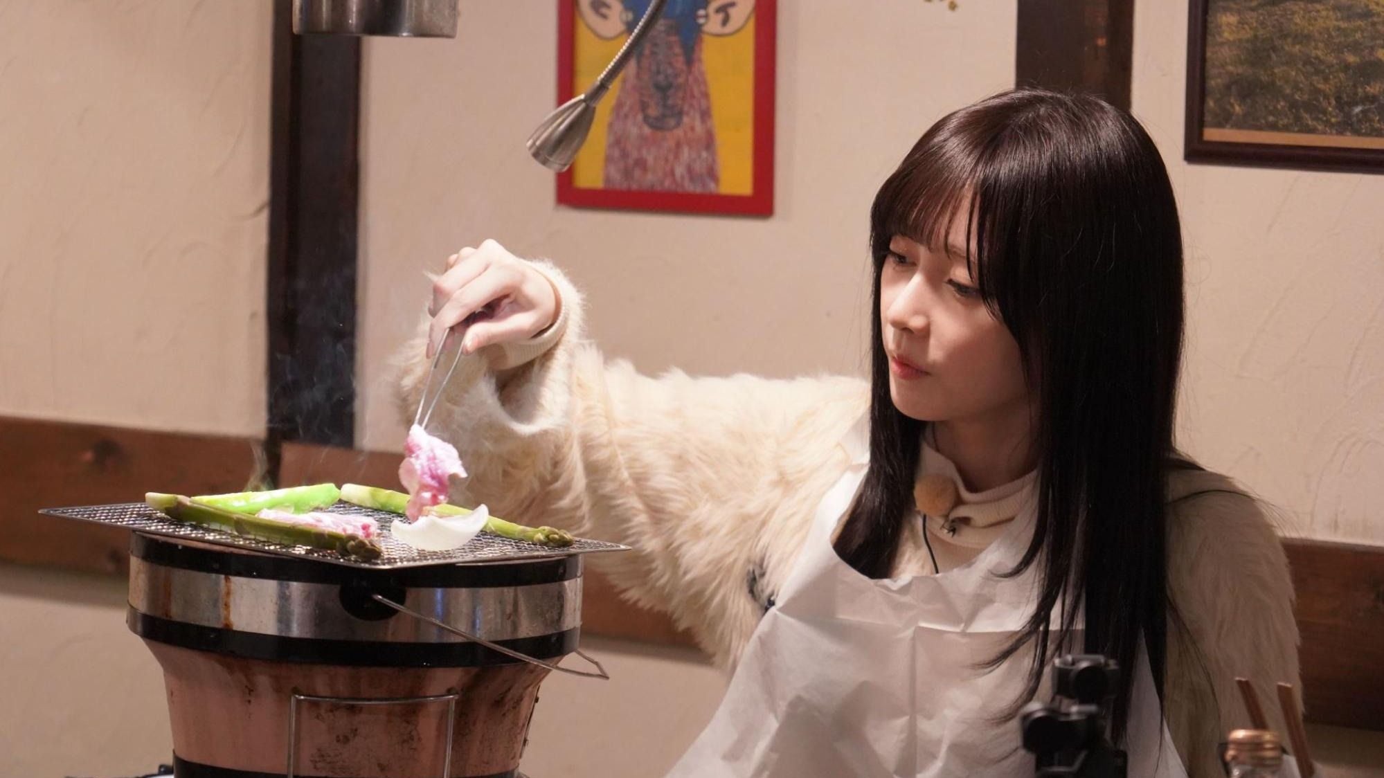 午後5時。5期生・池田瑛紗と6期生・矢田萌華を乗せた車が目的地に到着した。踏みしめるように雪道を歩く矢田と、恐る恐る歩く池田。2人がやって来たのは『士別バーべキュー』。士別市から直送される希少な“国産サフォーク羊”の炭火焼き・ジンギスカン専門店だ。