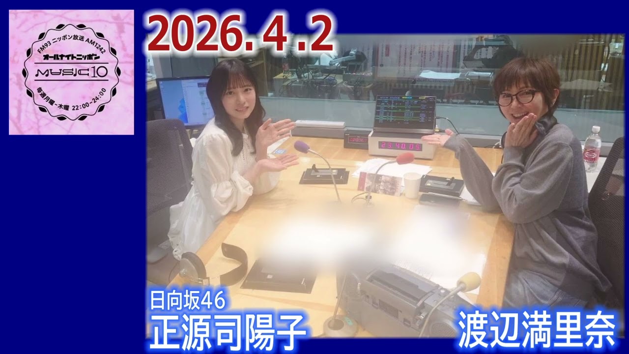 20260402 渡辺満里奈 オールナイトニッポンMUSIC10 ゲスト 日向坂46 正源司陽子 HINATAZAKA46日向坂46正源司陽子 Write A Commentコメントを投稿するにはログインしてください。