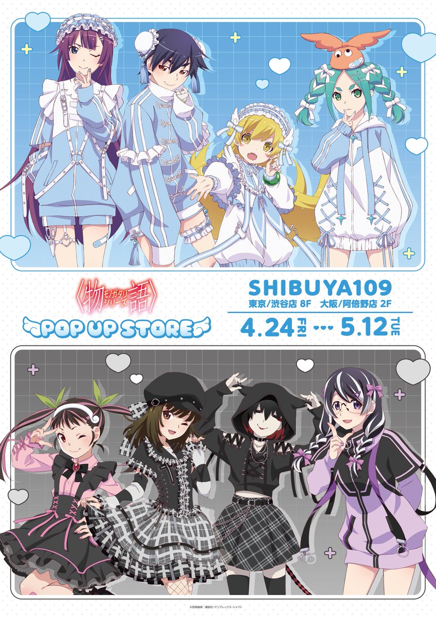 2026年4月24日より「SHIBUYA109(東京 渋谷店 / 大阪 阿倍野店)」にて、アニメ「物語シリーズ」の描き下ろしグッズを販売するポップアップストアを開催!
