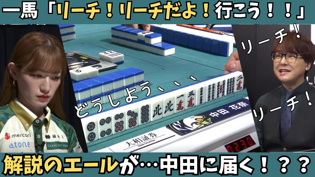 【Mリーグ:中田花奈】一馬「リーチ!リーチだよ!行こう!!」解説のエールが中田に届く!?