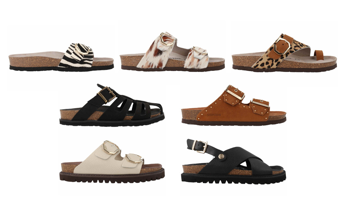 今シーズンは、LWG認定のレザーにレオパードやゼブラなどのアニマルプリントをプリントしたアイテムが充実。ストラップサンダルの「ゲラン」と「マチルダ」、トングデザインのスライドサンダル「グレミ」が、シンプルがコーディネートのアクセントに活躍します。どれも甲のフィット感をバックルで調節可能です。