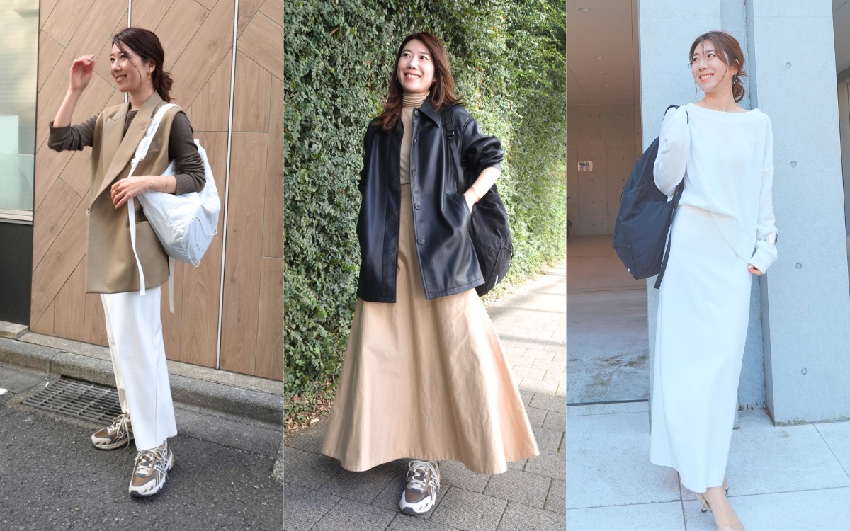リュックの日は、「きれいめ 7:カジュアル 3」くらいのバランスを意識。きれいめコーデをベースに、リュックでほんの少しの抜けを加えると、通勤スタイルがぐっと今のバランスに。