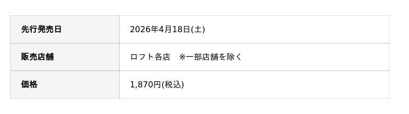 2026年4月18日(土)より、ロフト各店にて先行発売 ※一部店舗を除く