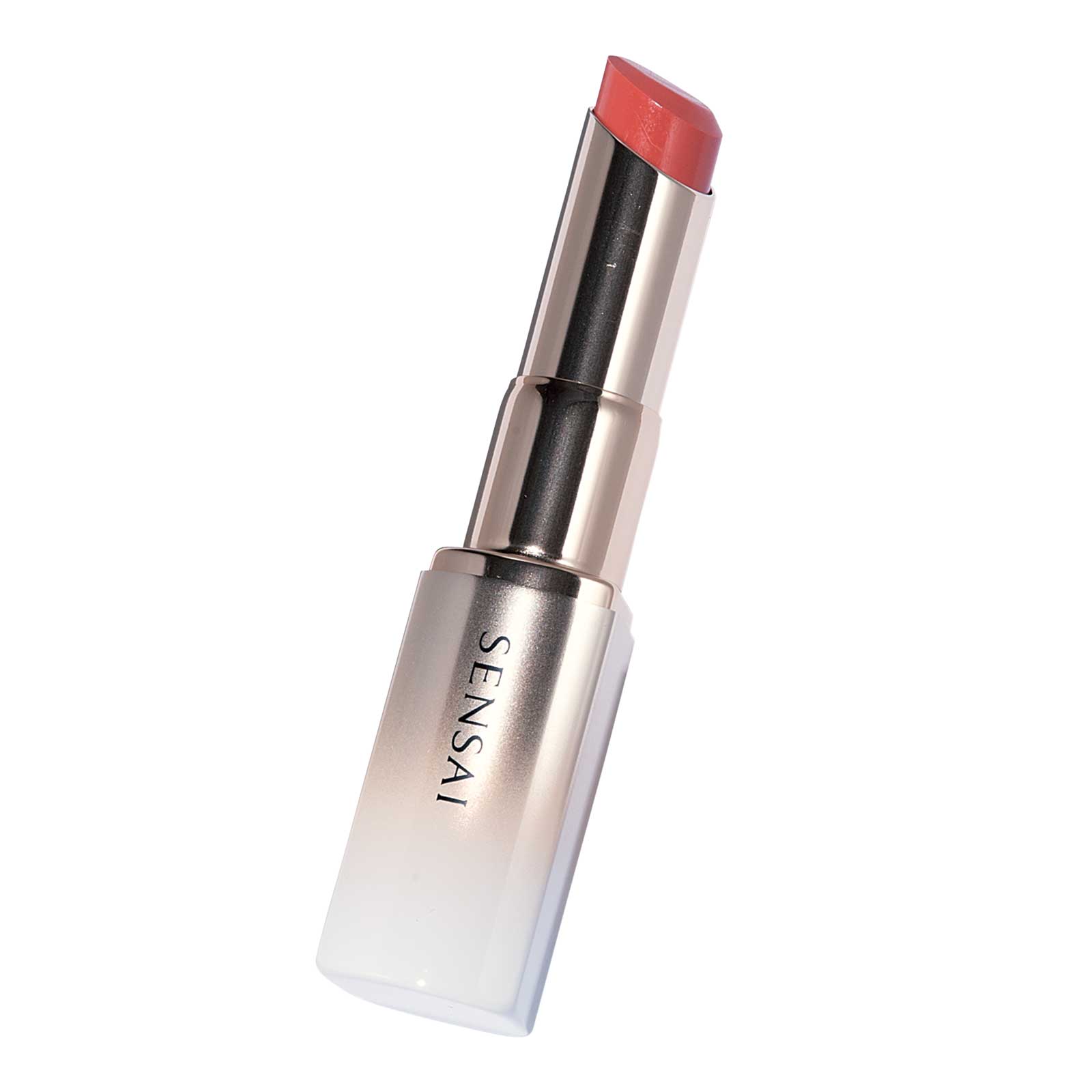彩度の高い明るめベージュ。唇をふっくら見せつつ、知的な印象に。SENSAI モイスチャーインテンスリップスティック MI07 ¥4,180、同 リップスティックホルダー ゴールド(限定) ¥1,650(カネボウ化粧品)