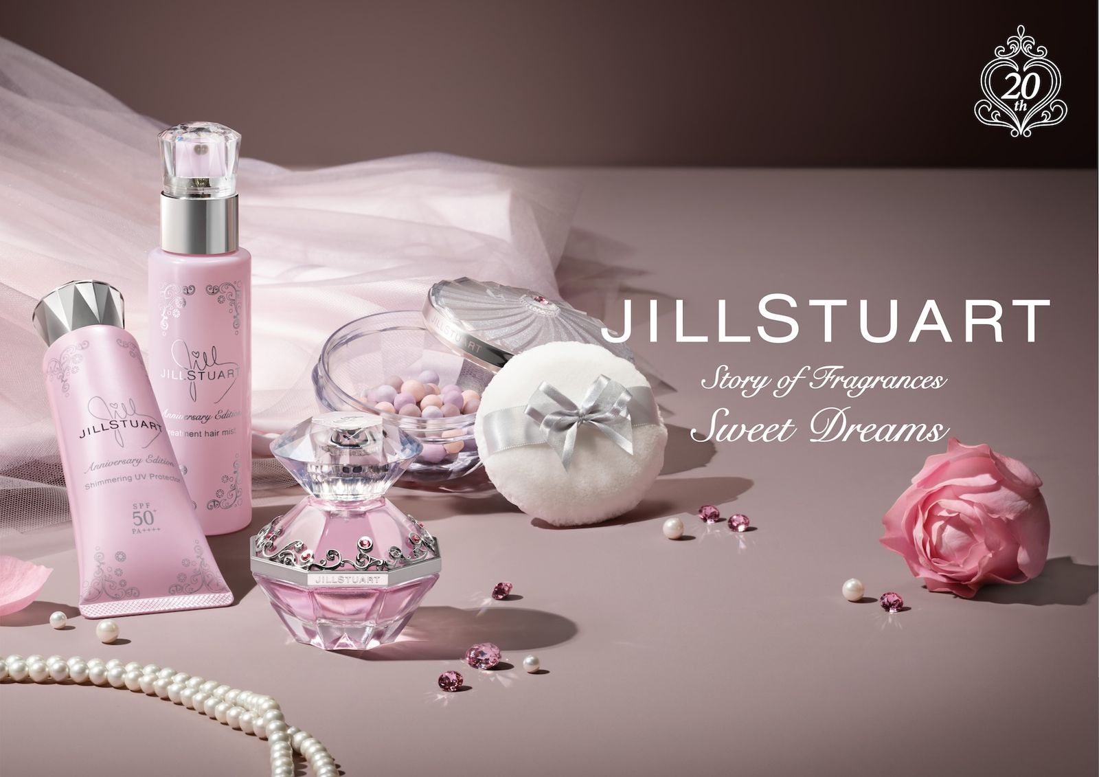 「ジルスチュアート ビューティ(JILL STUART BEAUTY)」は6月19日から4カ月にわたり、2008年に発売した限定フレグランス”スウィートドリームス”の香りを原点とした4アイテムを順次発売する。ブランド20周年を記念したマンスリーコレクションの第3弾として復刻するもので、オードトワレ、UVプロテクター、フェイス&ボディーパウダー、トリートメントヘアミストをそろえた。定番フレグランス“オード トワレ”のみずみずしいフローラルにバニラの甘さをプラスした香調で、完熟した果実のみずみずしさに始まりやわらかなフローラルブーケを経て、甘くまどろむような余韻へとつながる構成とした。また、パッケージは当時のデザインを忠実に再現しながらアニバーサリーの特別な装いを加えた限定仕様で、大人っぽいカラーリングの限定箱に仕上げている。
