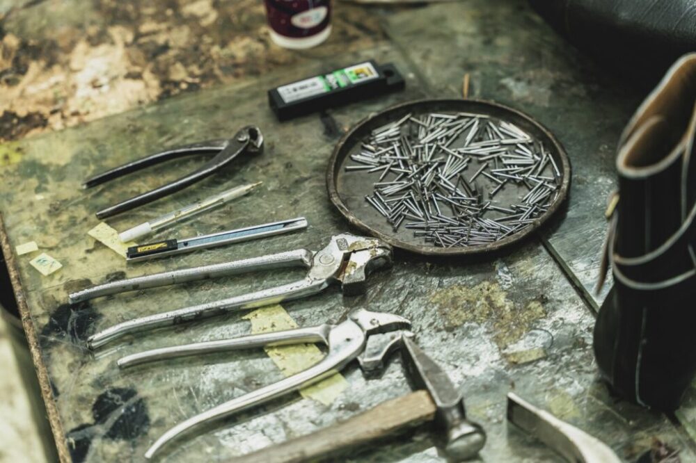 「Brass shoe co.」靴職人・渡邉夏生さん|スポーツメーカーを経て、ブラスシューカンパニーに入社するという異色の経歴を持つ。リペアからハンドソーンウェルテッドの縫製作業まで行う腕利きの職人。プライベートではフットサルが趣味である。