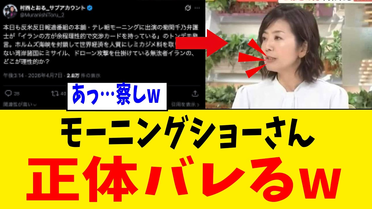 テレ朝「モーニングショー」で菊間千乃弁護士が放った衝撃の一言──「イランの方がよほど理性的」。ホルムズ海峡を封鎖して世界経済を人質にし、関係ない湾岸諸国にミサイル・ドローン2400発以上を撃ち込み、自国民の反政府デモを武力弾圧して3000人以上が死亡、女性の人権を踏みにじるイランの、いったいどこが「理性的」なのか?村西とおる氏の痛烈な反論、そして「理性的」を語る菊間氏自身の過去の未成年飲酒同席事件まで──「理性」とは何かを問い直す、琴音渾身の毒舌回。