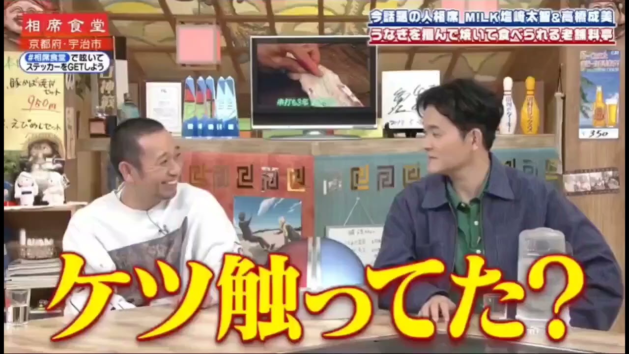 女性たちが苦笑し、塩崎が動揺する中、スタジオの千鳥大悟が「ケツ触ってた?」、ノブは「うなぎみたいな顔したおやじが」と唖然としながらも笑って確認。大悟は「このためにやってるから、うなぎ体験」。ノブも「このセクハラのために?」と突っ込むようにして語っていた。