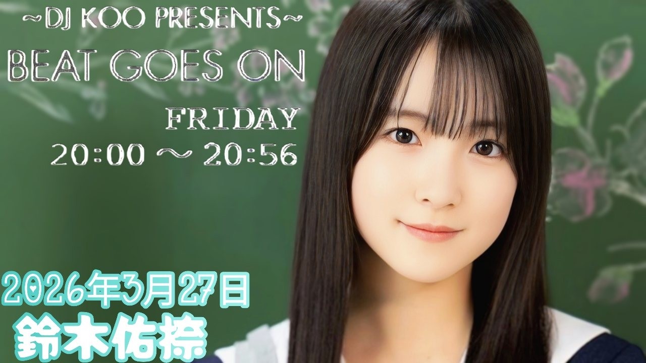 2026年3月27日 BEAT GOES ON A面 (鈴木佑捺) 2026年3月27日 BEAT GOES ON A面 DJ KOO/鈴木佑捺 #BEATGOESON #鈴木佑捺 #乃木坂46 ~ DJ KOO PRESENTS ~ BEAT GOES ON6期生Beat Goes OnDJ KOOnogizaka46trfYuuna Suzukiたいむちゃん乃木坂46鈴木佑捺