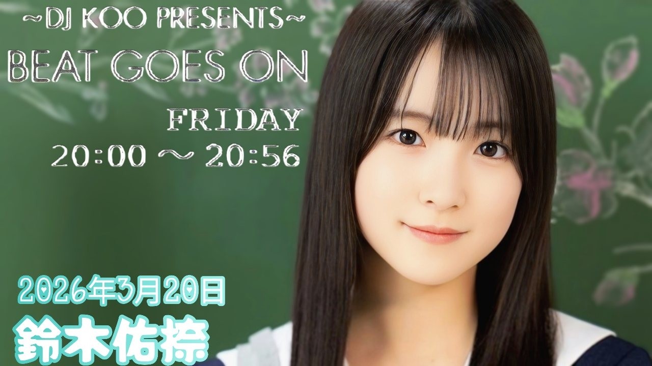 2026年3月20日 BEAT GOES ON A面 (鈴木佑捺) 2026年3月20日 BEAT GOES ON A面 DJ KOO/鈴木佑捺 #BEATGOESON #鈴木佑捺 #乃木坂46 ~ DJ KOO PRESENTS ~ BEAT GOES ON6期生Beat Goes OnDJ KOOnogizaka46trfYuuna Suzukiたいむちゃん乃木坂46鈴木佑捺