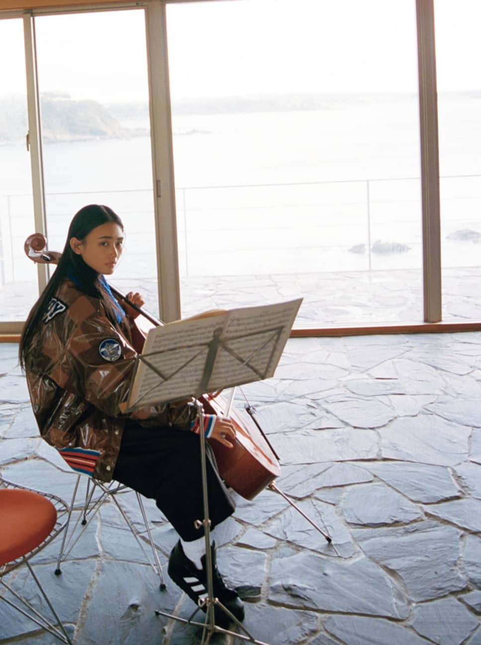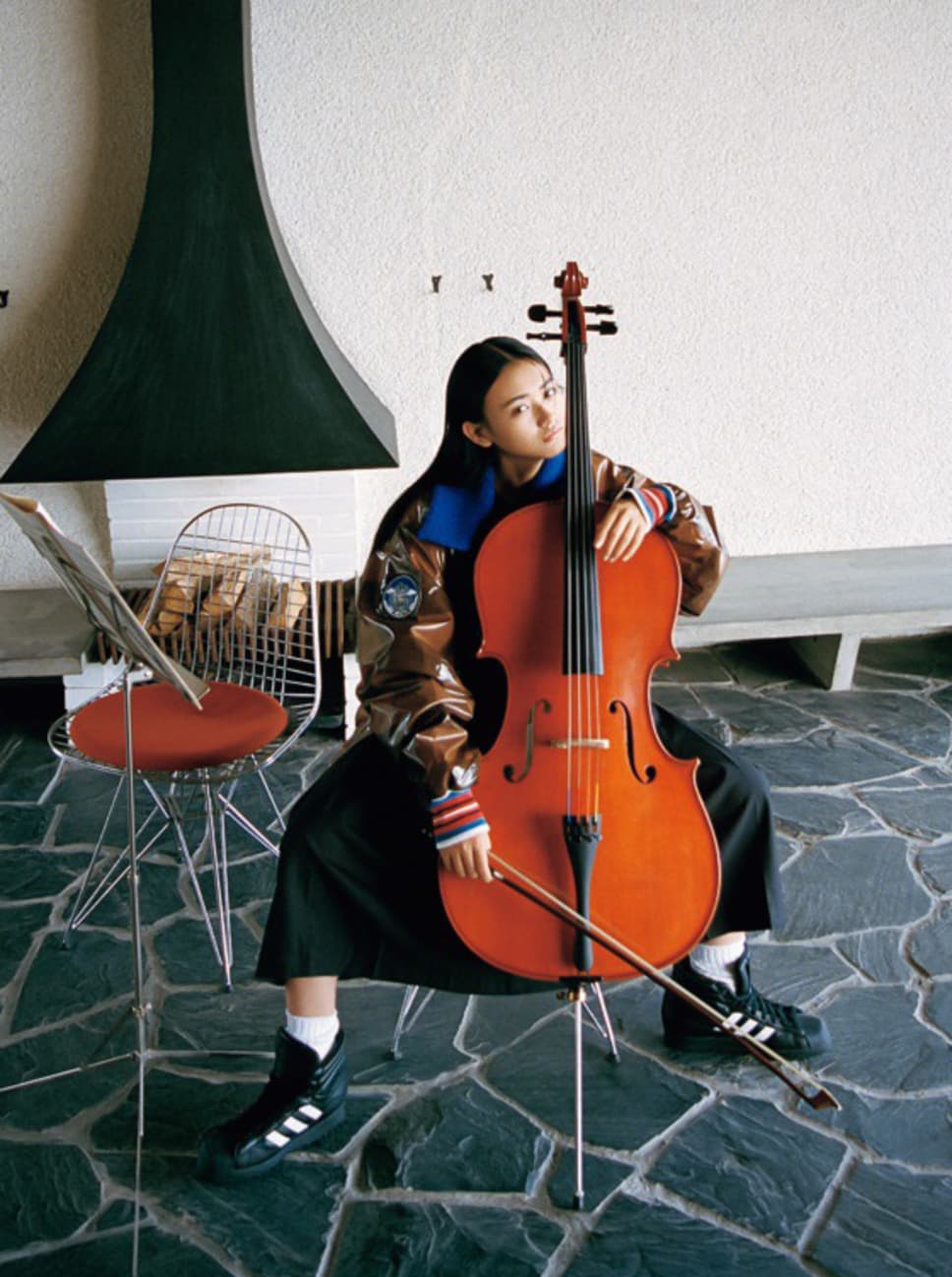 今日みたいにちょっとラフな格好でチェロを弾きこなしている女のコがいたら……可愛すぎる♥ 海外の映画に出てきそうな感じですよね。ちょっと孤高な雰囲気だけど、話しかけたら意外と優しくて。そんな感じのコがいたらすごい好きになっちゃいそう(笑)。