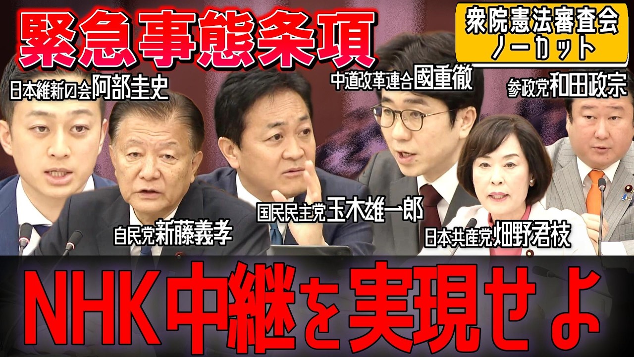 「緊急事態条項」を巡る各党の激しいスタンスの違いと、阿部圭史氏や玉木雄一郎氏らからのNHK中継要求の声もノーカットでお届けします。