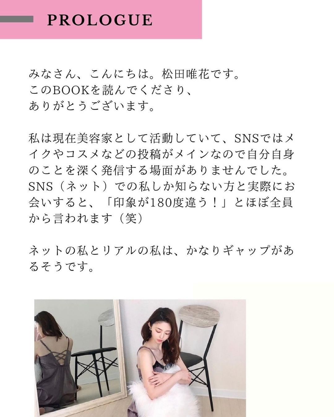 プロローグにも書きましたが、SNS(ネット)での私しか知らない方と実際にお会いすると「印象が180度違う!」とほぼ全員から言われるので(笑)、本来の私を知っていただけたら嬉しいです💄