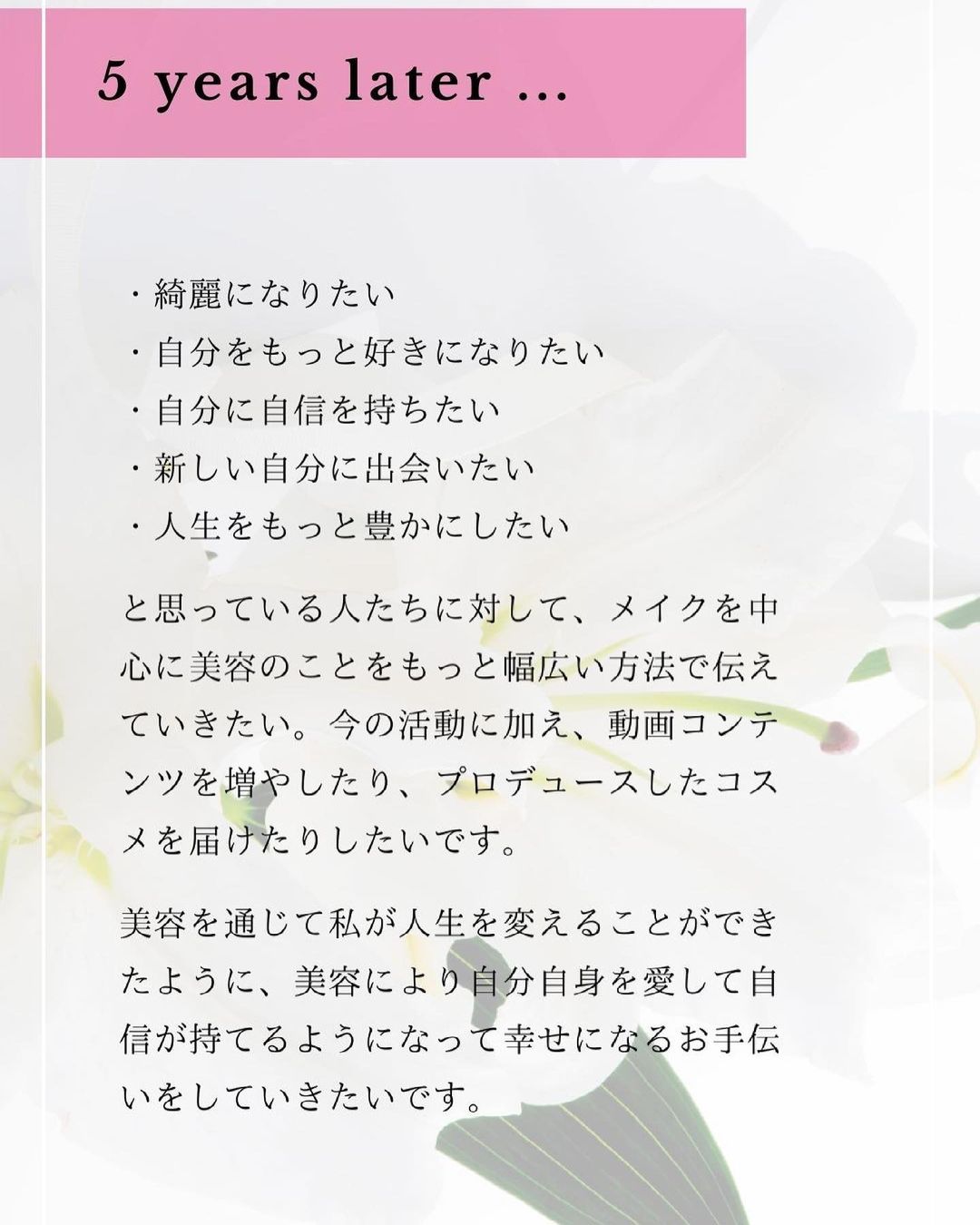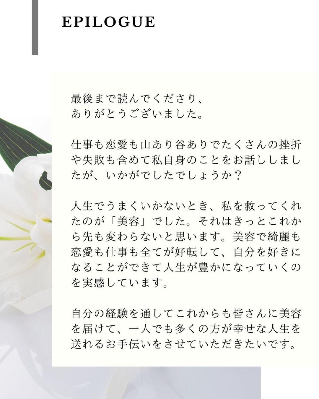 SNSでは美容の発信がメインで、自分自身のことを詳しくお伝えする機会がそんなになかったので、ここまで掘り下げて自分自身のことを発信したのは初めてです!
